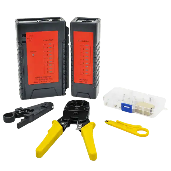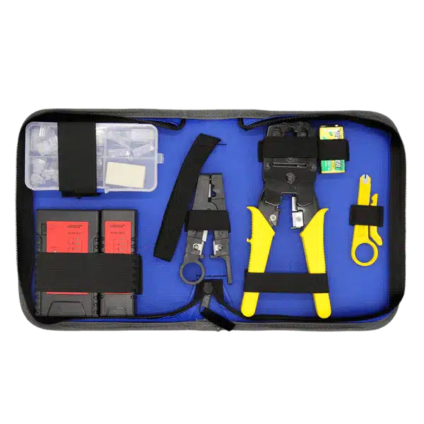 این کیت ابزار شبکه، یک راهکار کامل و اقتصادی برای تمام نیازهای شما در پروژههای شبکه و مخابرات است. با این مجموعه کاربردی، میتوانید تمام کارهای ضروری از جمله پرس کردن، لخت کردن، تست و عیبیابی کابلها را به سادگی و با یک ابزار انجام دهید.