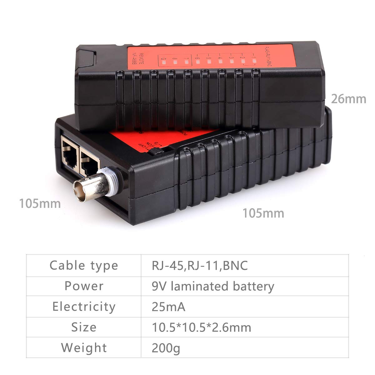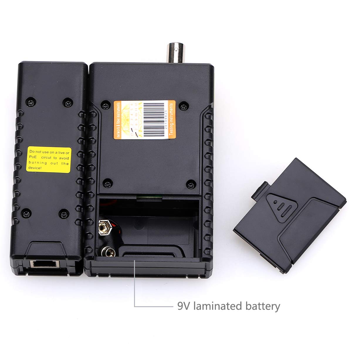 - انواع کابل قابل تست: این تستر برای کابلهای شبکه (RJ45)، کابلهای تلفن (RJ11) و کابلهای کواکسیال (BNC) مناسب است.